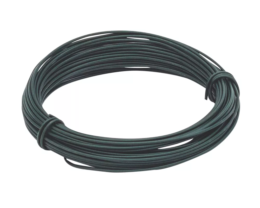 Heavy duty PVC coated garden wire for supporting plants and vegetables or securing wire fencing to posts.
