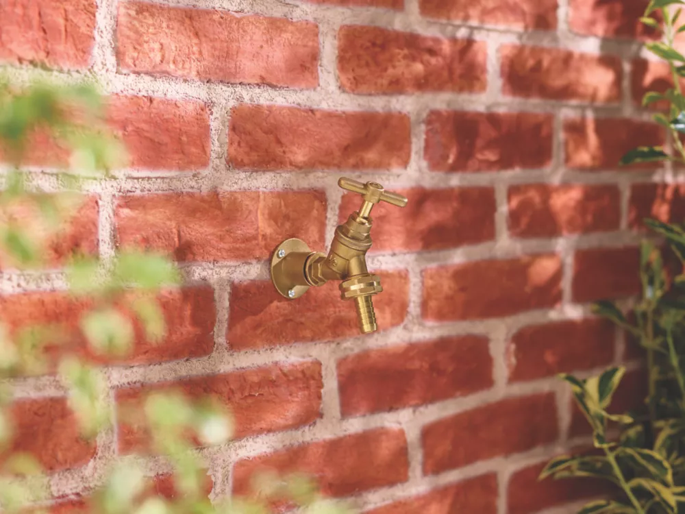 Brass, self-cutting outside tap suitable for use with water. Simple DIY installation without the need for external pipework.