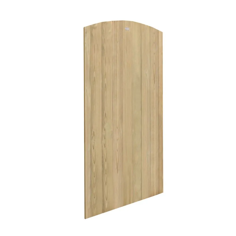 Strong gate with 12mm thick interlocking tongue and groove boards mounted to a double-Z frame. This construction increases security and privacy. Manufactured from sawn timber for an attractive, natural appearance. Curved top matches domed top panels and adds a stylish feature to any garden.