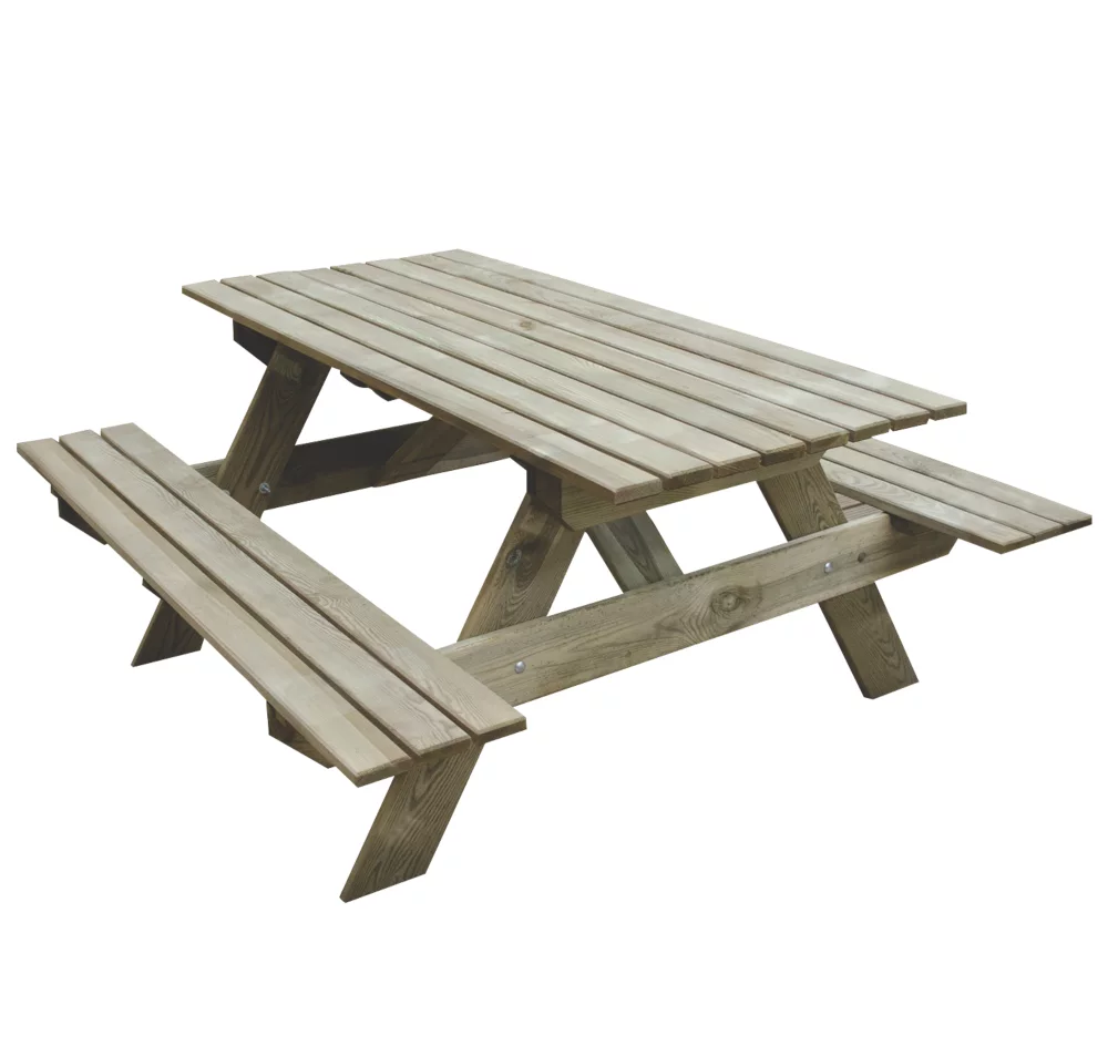 Classic picnic bench design for any garden. Benches will seat up to 4 adults. Manufactured from pressure-treated timber that has been smooth-planed for a splinter-free finish.