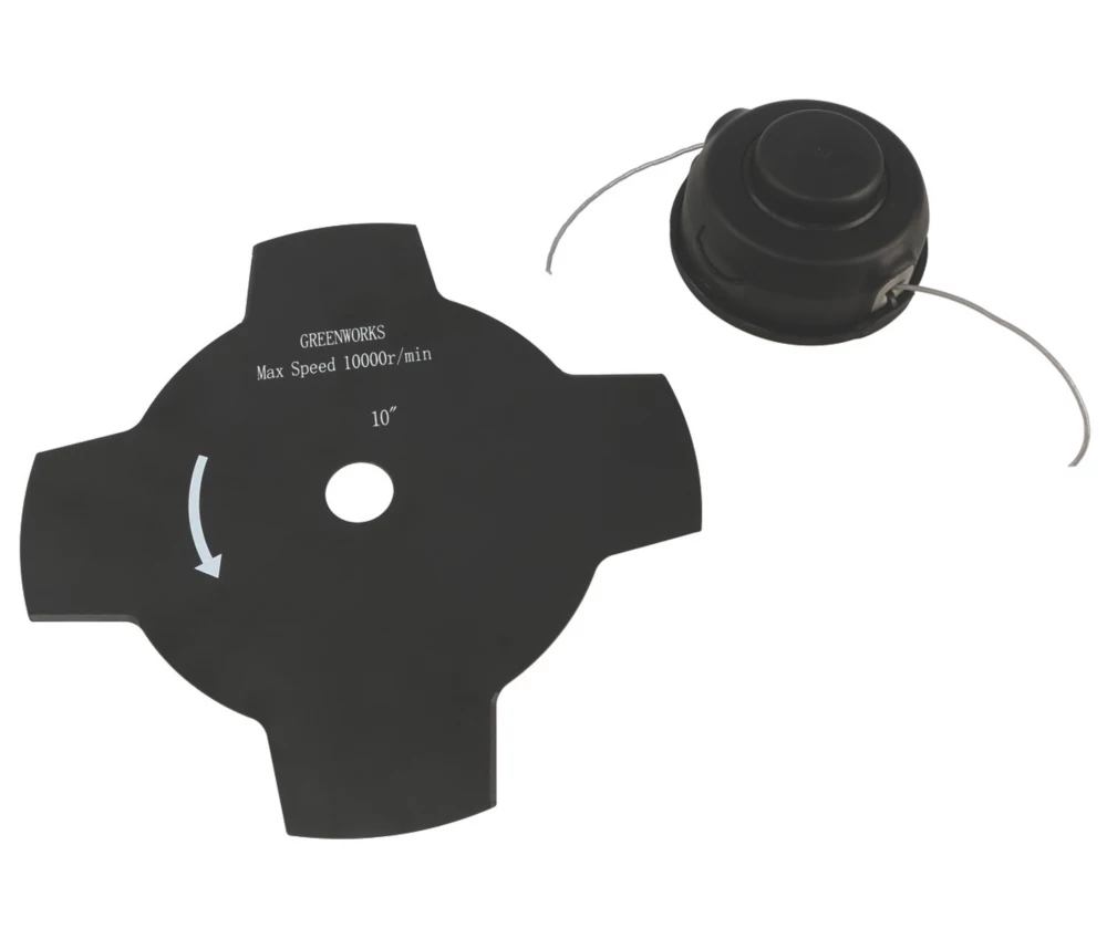 Ideal for domestic use. Easier to use than an electric trimmer and as powerful as a petrol one. Fit either a line trimming head for cutting long grass or a blade for weeds and heavy growth. Can cut the most dense grass.. Features fast cutting, low noise and almost zero maintenance. Accepts attachments from multiple brands. Dual bump feed head with 2mm line. Supplied with metal brush cutter blade.