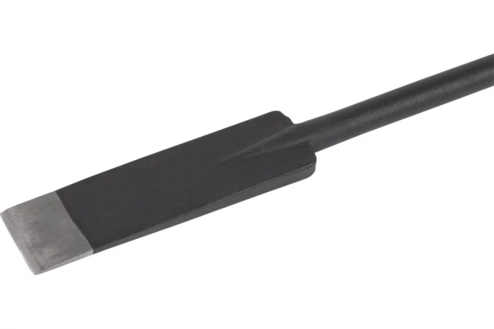 Hardened and tempered, drop-forged alloy steel. Tamper head and chisel point. Polished tip.