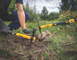 Manufactured from heavy duty, carbon steel with a corrosion-resistant tumble lacquer finish, connected to a tough and durable fibreglass handle. 14 recessed tines effectively penetrate, break-up and spread ground materials. Serrated back blade for breaking soil down into finer particles, levelling and scraping.