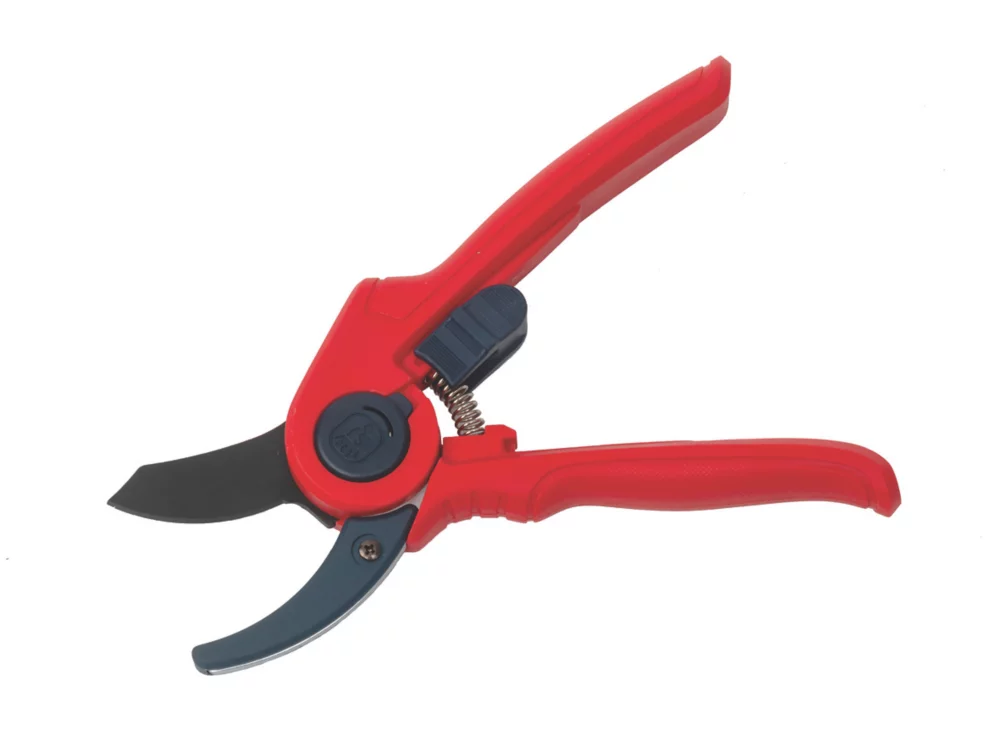 Anvil cutting action for thicker and woodier stems. Hardened PTFE-coated carbon steel blades for rust resistance and contoured ergonomic handles for a comfortable grip. Extra-large safety thumb catch allows easy unlocking and locking.