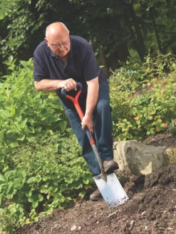 General purpose treaded contractors shovel. Popular in the utility sector. Ideal for digging and refilling trenches, shovelling tarmac and mixing concrete. Heat treated and tempered for high performance and long life. Integrated hand stop to help prevent the hand slipping onto the forged head.