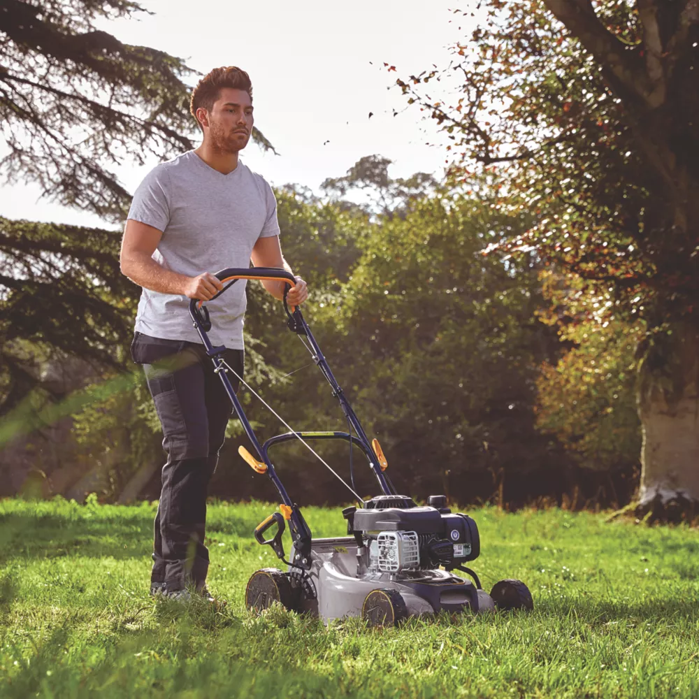 Features advanced cutting blades for reliable performance. Includes 41cm cutting deck and universal blade with mulching, catching and overload protection. No cords, therefore ideal for keeping lawns tidy even when there is no power source in reach.